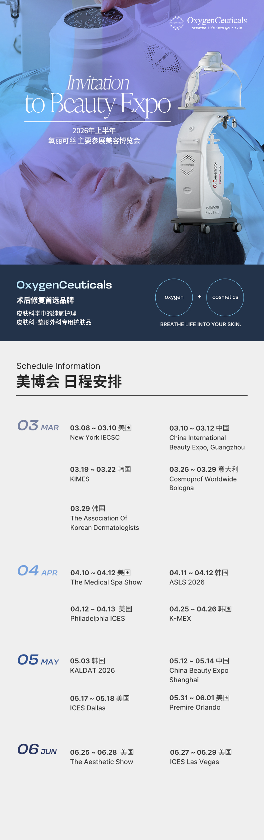 2026上半年 | 氧丽可丝参展美博会日程正式更新!
